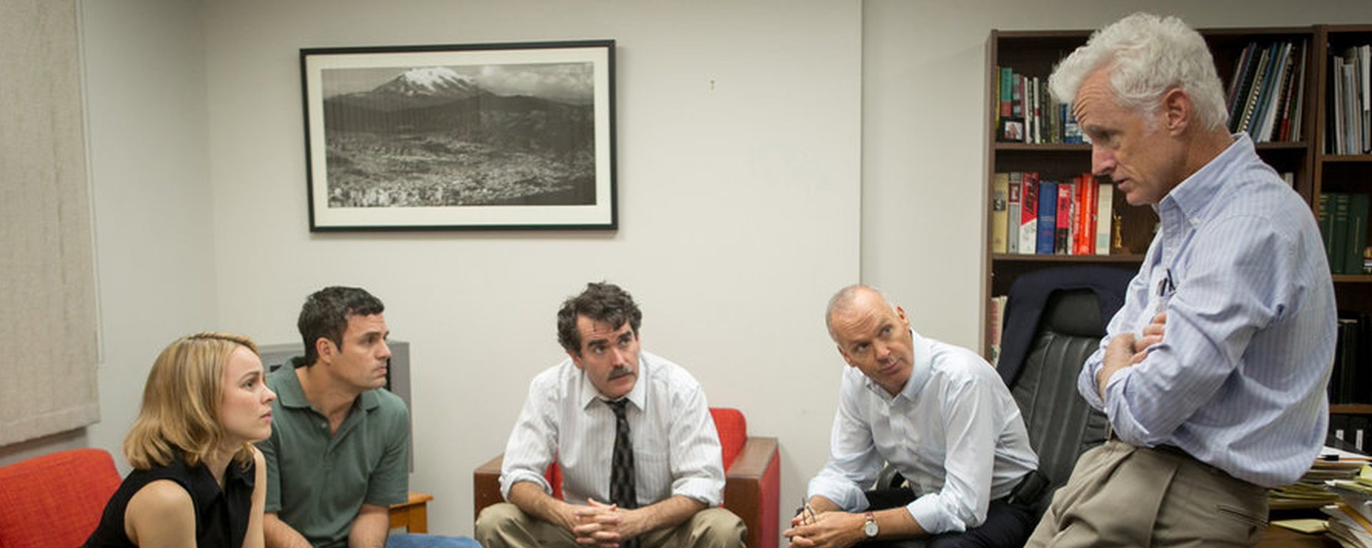 Even the eye catching ensemble cast aren’t afforded overly expressive or domineering performances. It’s a strange paradox by where the roles could be played by anyone, but to act with such discretion requires brilliant actors capable of convincing anonymity. This subtle excellence is epitomised by Mark Ruffalo’s awkward and twitchy turn as Michael Rezendes. His character is littered with nuanced ticks that inspire a level of authenticity often overlooked. However, what truly stands out is Rezendes’ humanity. Confronted with the idea that religious abuse is all around him he lapses into an outpouring of grief, horror and, most poignantly, guilt. While less eye catching, Keaton is excellent as Editor Walter “Robby” Robinson. His stern exterior hides a questioning fragility about whether, in his privileged position, he’s allowed this abuse to exist over his investigative, prying eye too long.