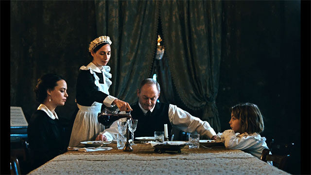 Matching the technical mastery is the psychological layer that underpins the ominous atmosphere. Very little is explicitly stated throughout the film. Instead Corbet favours suggestive ambiguity to the fractured nature of the family. There’s hints at an affair between the authoritarian Father and Prescott’s French teacher Ada (Stacy Martin), who Prescott himself lusts after in a Freudian twist. Elsewhere the Mother has secretive dealings with jaded journalist Charles (Robert Pattinson) as well as insecurities over her own maternal duties being usurped by the various house staff. Inspired by the truculence around him Prescott becomes increasingly devious, soon beating the grown-ups at their own games. When Prescott purposely belts the moral of his French story “little friends may prove great friends” you realise he’s fully aware of the statements manipulative potential.
